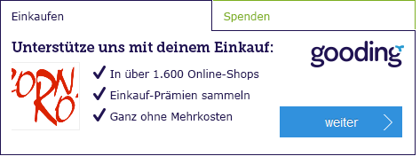 Spenden können Sie ganz bequem per PayPal, Überweisung oder auch bei einem Einkauf über gooding. Vielen Dank für Ihre Unterstützung!